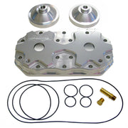 The ADA Racing Billet Heads for the Kawasaki 750/800 Jet Ski's are made from 6061-T6 aluminum and CNC machined for consistency and performance. This head uses the stock head bolts and is clear anodized for protection against corrosion and features dual water outlets for additional cooling. Headshell includes o-rings that fit into the grooves in the headshell and brass fittings. Head shells are available in standard or girdled versions for those running higher compression and looking for extra insurance. The girdled version requires the girdled hardware kit sold separately. Multiple dome configurations are available to tailor to your specific engine needs. Two domes are included with this kit, additional and replacement domes are available separately. This head will work with Factory Pipe’s 800 dry pipe.
