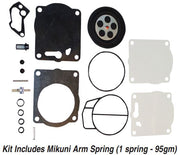 Genuine Mikuni Sea Doo 951 46i Super BN (SBN) Square Body carburetor rebuild kit includes internal carburetor gaskets, o-rings, fuel filter, float arm, spring (95gm), check valves and diaphragms only. Kit does not include the needle and seat assembly or jetting, these items are available separately. One carburetor rebuild kit will do one carburetor.